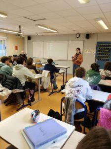 Mathilde Cariou, journaliste à France Culture, est venue aujourd’hui au lycée Diwan de Carhaix échanger avec les lycéen·ne·s et l’équipe au sujet de la filière en langue bretonne par immersion et des conséquences de la réforme du lycée général sur l’enseignement du breton depuis 2017.