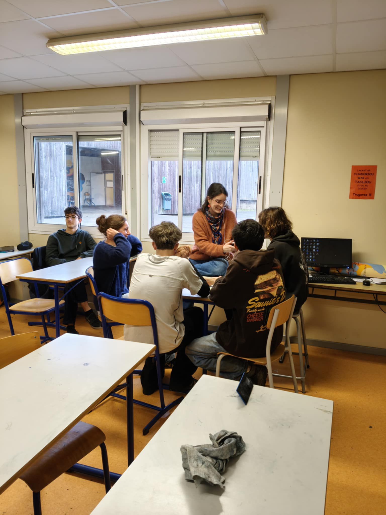 Mathilde Cariou, journaliste à France Culture, est venue aujourd’hui au lycée Diwan de Carhaix échanger avec les lycéen·ne·s et l’équipe au sujet de la filière en langue bretonne par immersion et des conséquences de la réforme du lycée général sur l’enseignement du breton depuis 2017.