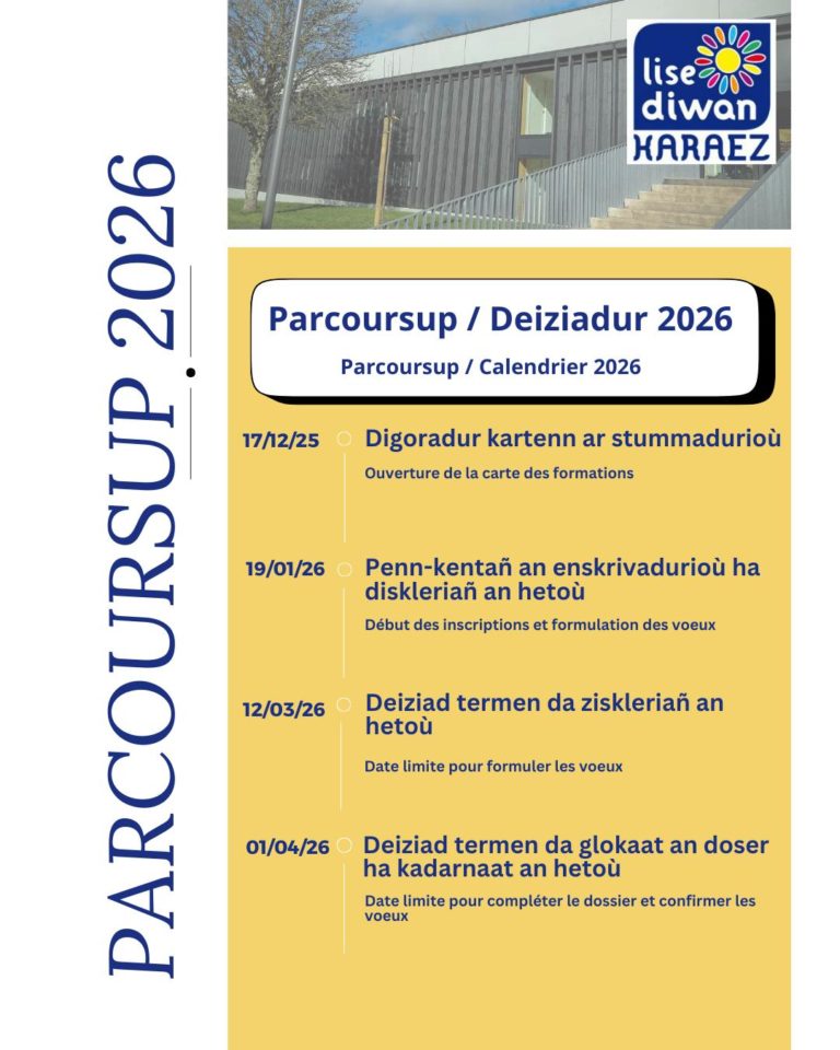 DEIZIADUR PARCOURSUP 2026 evit al liseadezed ha liseidi termen hag o familh / Calendrier Parcoursup 2026 pour les élèves de terminale et leur famille E